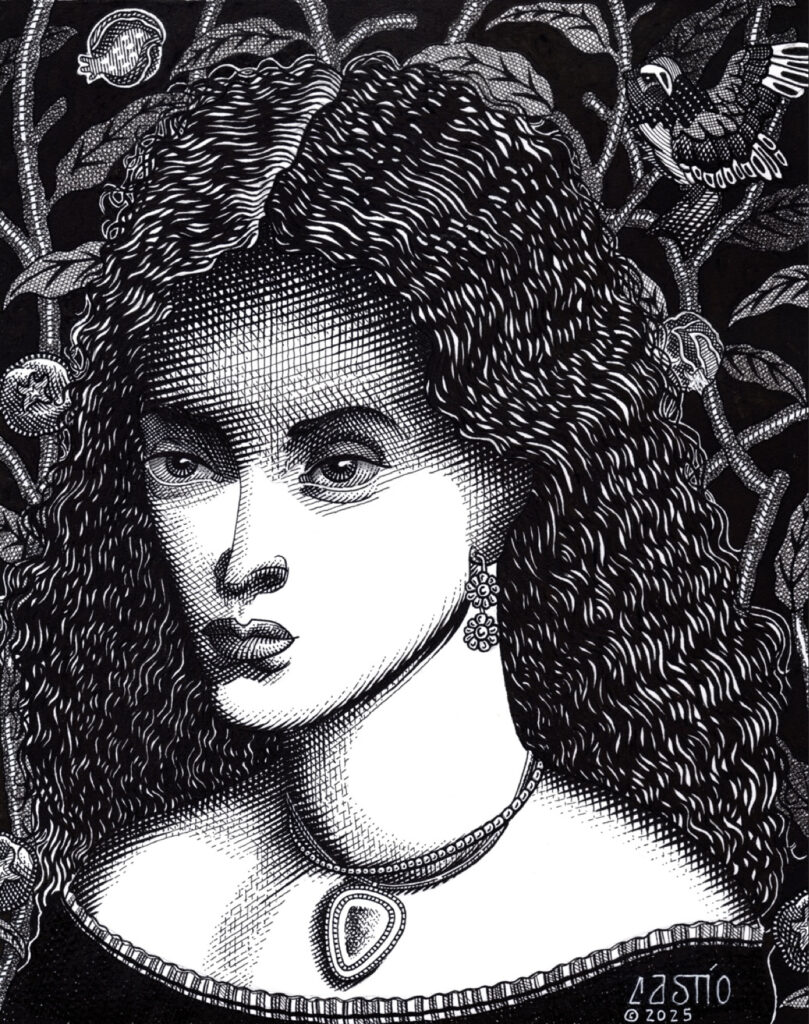 The turning point came with my drawing Mystery, created at the tail end of that long, suffocating stretch as I fought to free myself from the grip of stasis. Its completion marked a new plateau. My embrace of a Pre-Raphaelite aesthetic, which began with Entre Sombras in 2022, had reached a higher level, giving me the means to express my authentic voice. That evolution did not go unnoticed.