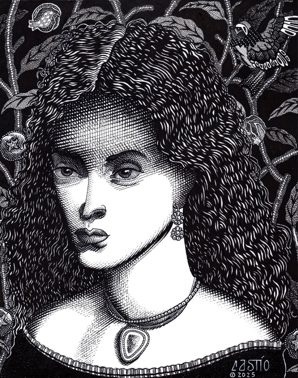 Beautiful Rebellion. 2025. Pen and ink on paper. 9″x12″.